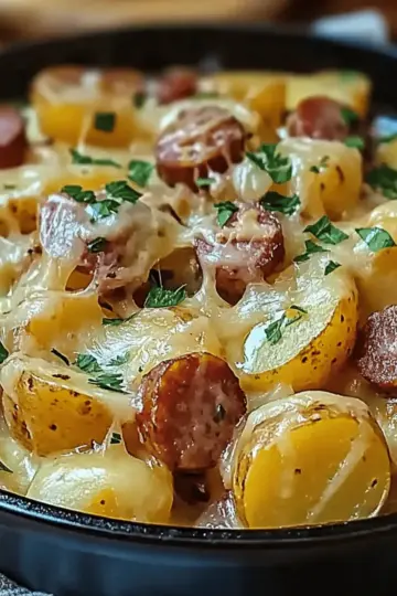 Cheesy Ranch Potatoes and Smoked Beef Sausage Delight